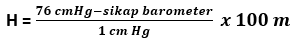 atmosfer (1atm=1 cmHg). Setiap kenaikan 100 m, tekanan udara berkurang sebesar